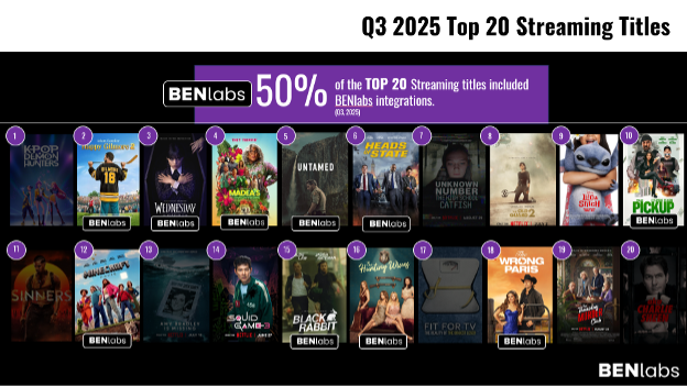Smart integration partners are identifying high-potential projects earlier, negotiating deeper creative involvement, and landing brands in stories that resonate longer and deeper with viewers. By combining industry expertise with predictive metrics through Content IQ (which helps flag high-potential projects early) and performance measurement through our Cultural Relevance Index (which quantifies how integrations perform once content is live), BENlabs can select and secure deeper, more natural brand involvement in the stories that resonate longest and travel furthest. In a world where discovery is increasingly algorithmic and attention is the scarcest resource, being in the titles that rise to the top is the most efficient way to earn genuine audience exposure.